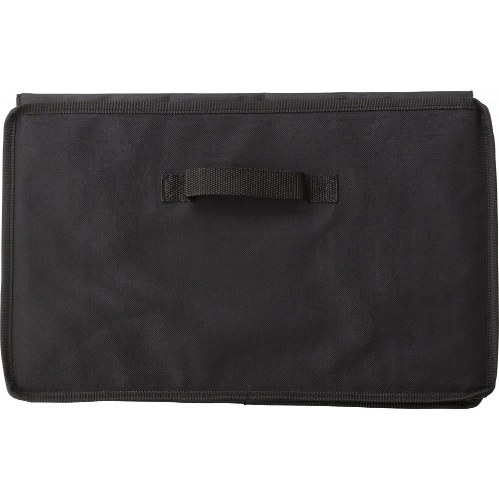 Autós rendező. Két rekesz, amelyből az egyik egy cipzárral zárható hűtőtáska alu szigeteléssel. Laposra hajtogatható. 600D poliészter.