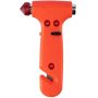 ABS vészkalapács, fehér LED lámpával (be/ki), integrált biztonságiöv-vágóval és ablakkalapáccsal. A kalapács gumiheggyel védett. Barna kartondobozba egyedileg csomagolva érkezik.