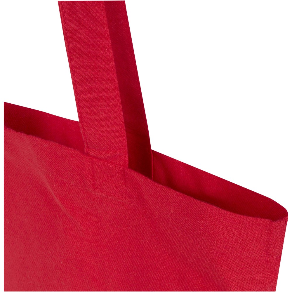 60% újrahasznosított pamutból és 40% RPET-ből készült, GRS tanúsítvánnyal rendelkező bevásárlótáska. A Peru Blend bevásárlótáska 180 g/m2-es anyagsűrűségével erős és tartós megoldást kínál a mindennapi használatra. Nagyméretű főrekesze maximális láthatóságot biztosít bármilyen logónak, az ellenálló anyag pedig alkalmassá teszi nehezebb tárgyak szállítására is max. 5 kg-ig. A 30 cm-es vállpántok kényelmes hordozást tesznek lehetővé.