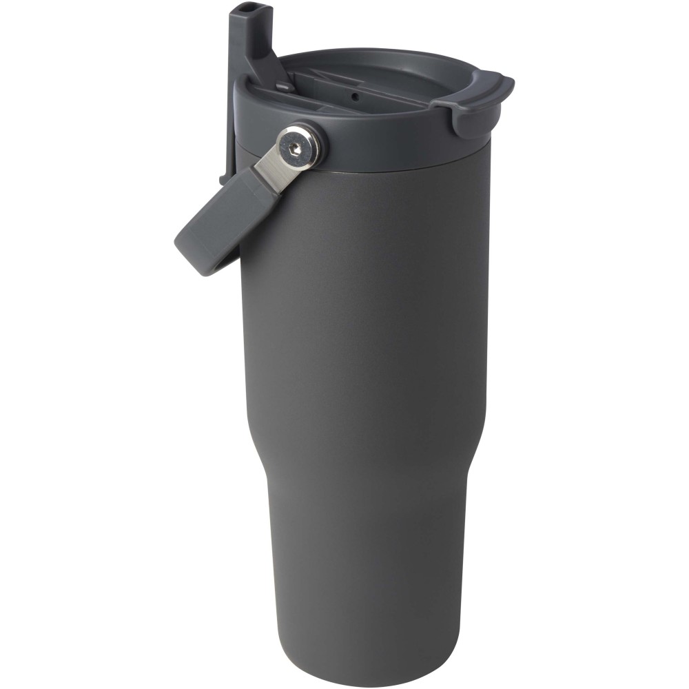 A Bronx 900 ml-es termoszbögre RCS tanúsítvánnyal rendelkező rozsdamentes acélból, dupla falú vákuumszigeteléssel és réz bevonattal készült. A tető kétfunkciós kialakítással rendelkezik: összecsukható ivószárral a kényelmes kortyoláshoz, valamint felpattintható nyílással és lehajtható fogantyúval az egyszerű hordozhatóság érdekében. A legtöbb autós pohártartóba illeszkedik. Újrahasznosított kartondobozban szállítjuk.