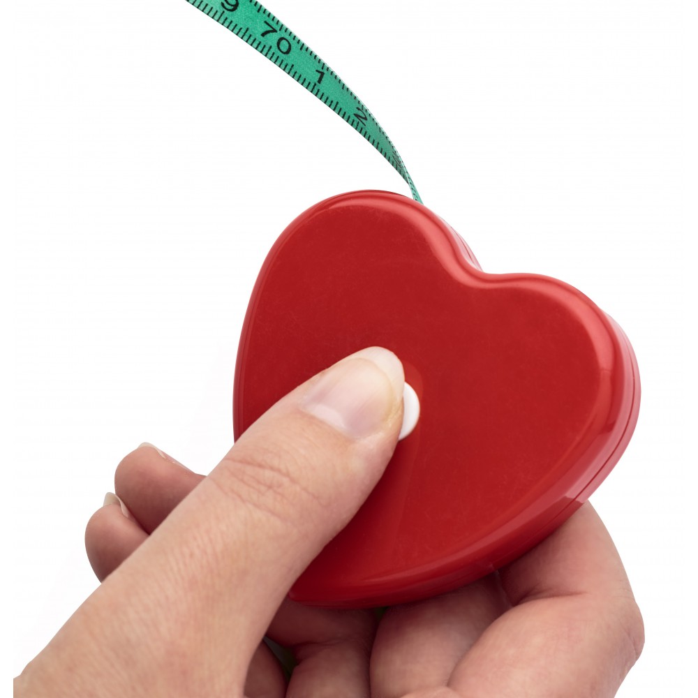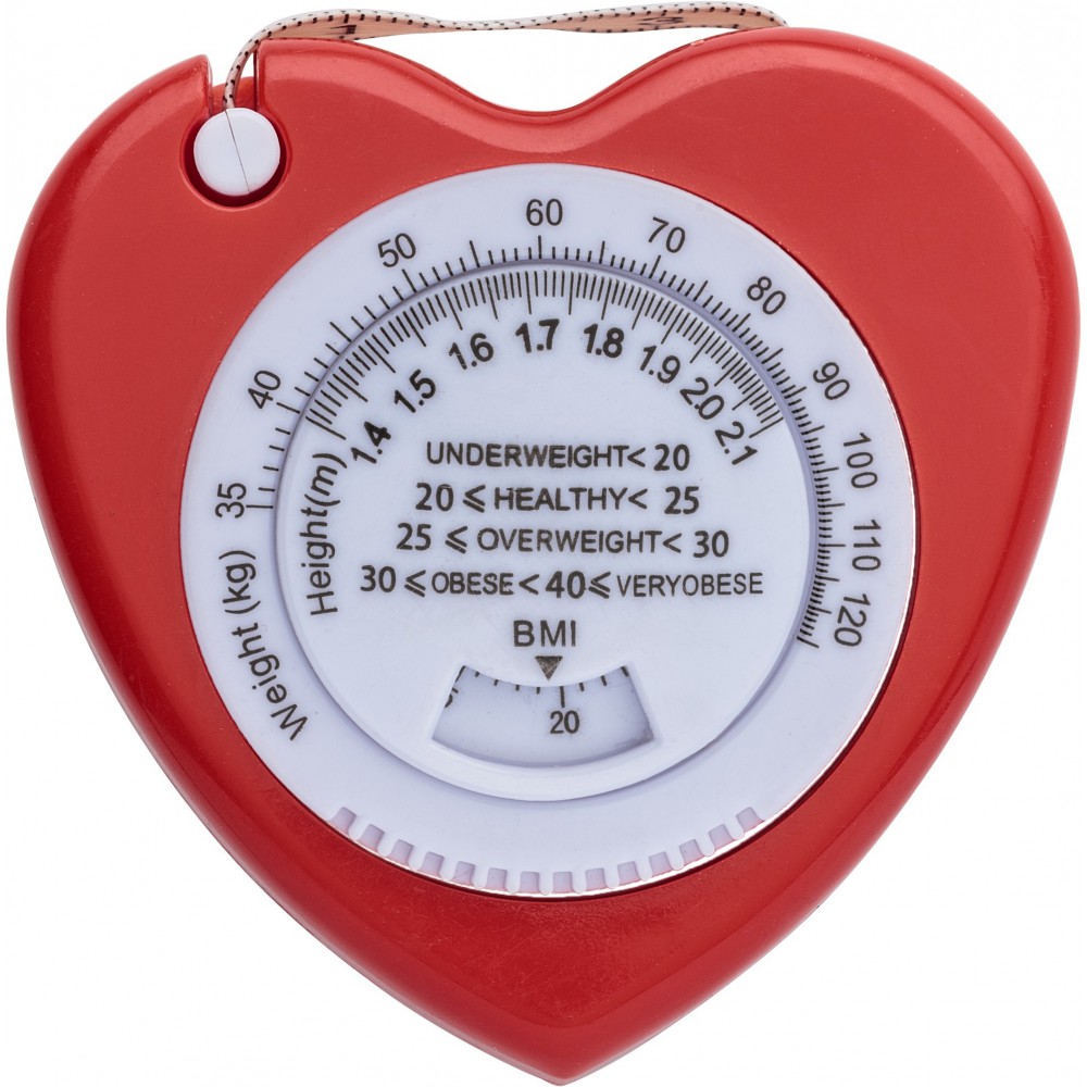 Szív alakú, BMI (testtömeg index) számításra is alkalmas, 1,5 méteres, műanyag mérőszalag.
