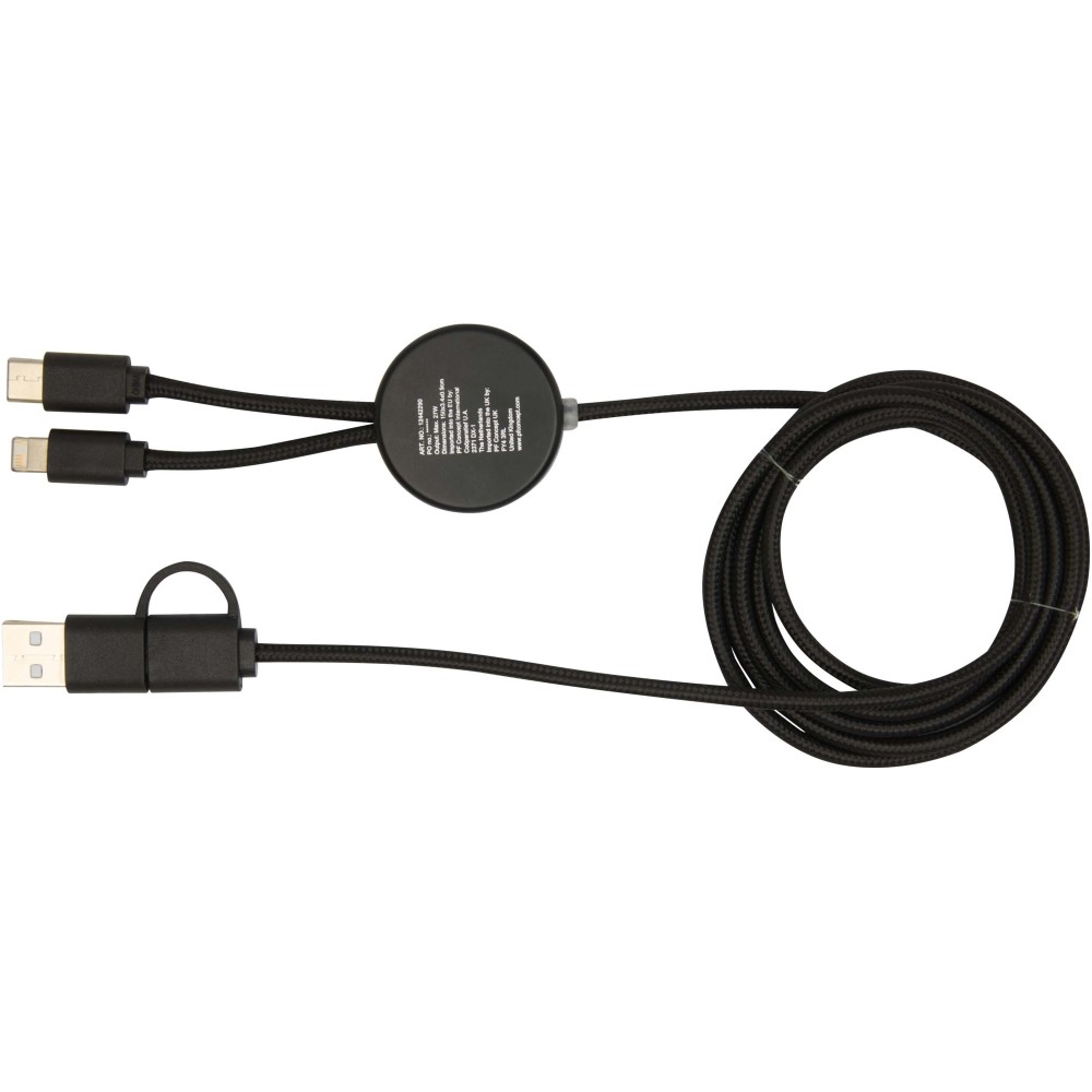 A Chechia 5 az 1-ben adat- és 27W-os gyorstöltő kábel újrahasznosított műanyagból készült, felelősen beszerzett bambusz díszítéssel. A kábel USB-A és Type-C bemeneti csatlakozókkal, valamint Type-C és Lightning/Micro USB kombinált kimeneti csatlakozóval rendelkezik. Az USB-A?USB-C kapcsolat maximális teljesítménye 27W, míg az összes többi kapcsolat maximális teljesítménye 15W. Kompatibilis a CarPlay és az Android Auto rendszerekkel. Akár otthon, az irodában vagy útközben használod, a Chechia kábel teljesítményt és stílust garantál. Kábel hossza: 30 cm.