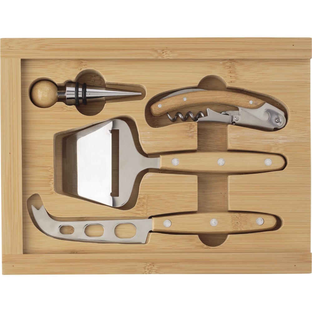 Tartalma: dugóhúzó, bordugó, sajtreszelő és kés.