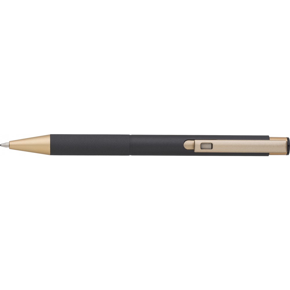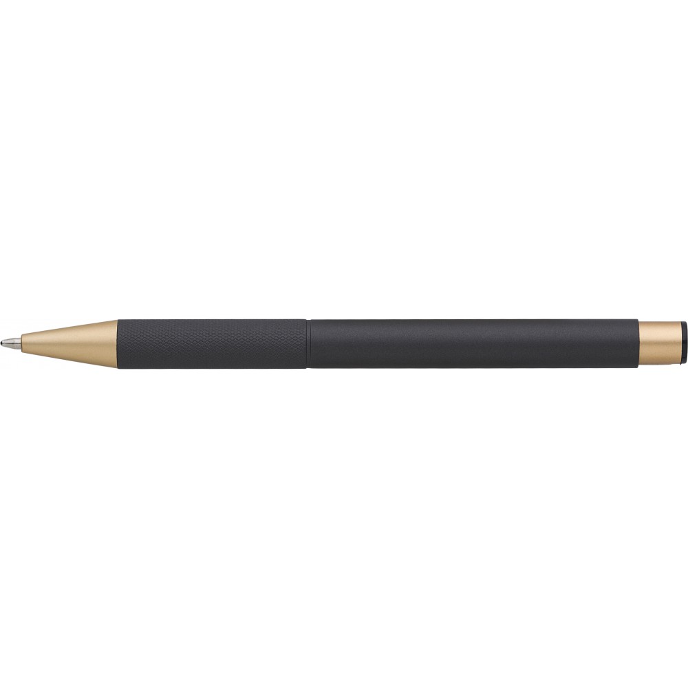 Alumínium golyóstoll matt arany részletekkel, kék tollbetéttel.