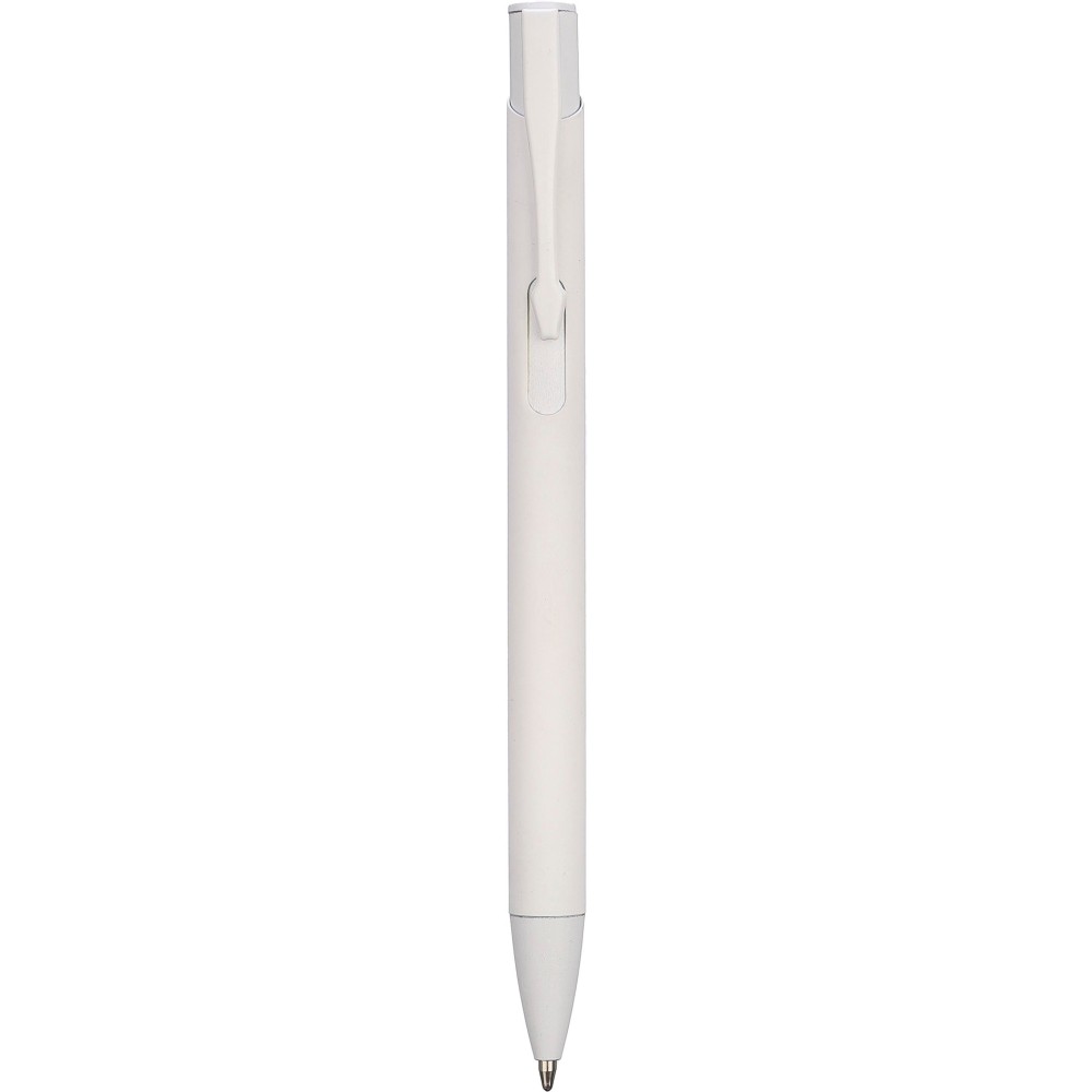 Újrahasznosított alumíniumból készült golyóstoll gumírozott bevonattal a tolltesten. A klipsz, a tollhegy és a nyomógomb azonos színű. A klipsz fémből, a tollhegy műanyagból készült. Kb. 800 méter íráshossz. Gravírozott újrahasznosított alumíniumra utaló logóval. Kék tollbetéttel.