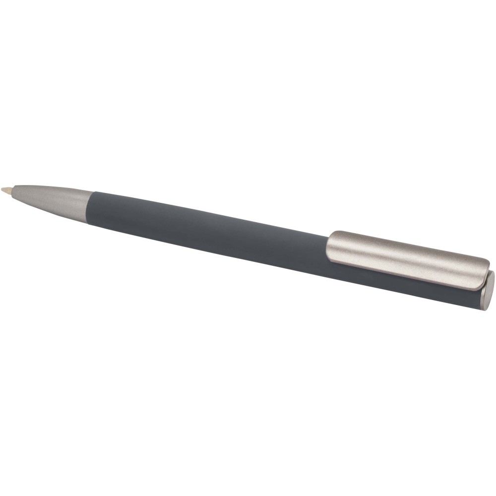 Golyóstoll újrahasznosított alumíniumból készült tolltesttel és sötétszürke matt bevonattal, ABS műanyagból készült klipsszel. Tinta színe: kék. Íráshossz: 800 méter. Tollhegy mérete: 1,0 mm.