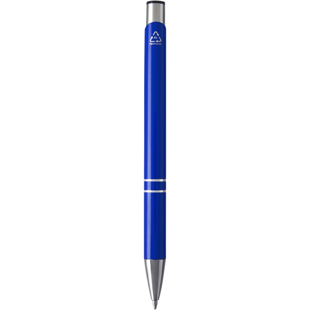 Golyóstoll újrahasznosított alumíniumból, lakkozott felülettel és króm részletekkel. Az újrahasznosított alumínium csökkenti a hulladéklerakók terhelését, segít megőrizni a természeti erőforrásokat és hozzájárul az üvegházhatású gázok kibocsátásának csökkentéséhez. Tinta színe: kék. Íráshossz: 1000 méter. Tollhegy mérete: 1,0 mm.
