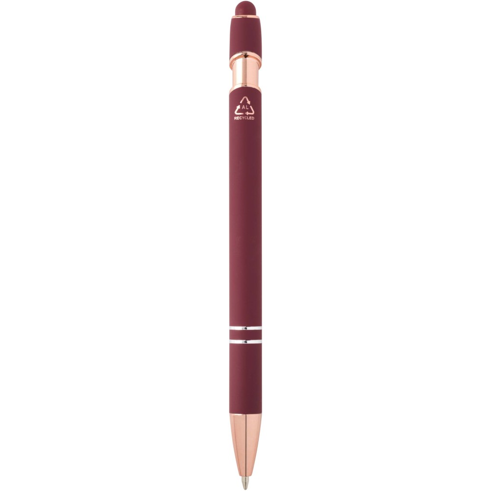 A Nanna golyóstoll rózsaarany bevonattal újrahasznosított alumíniumból készült tolltesttel és szilikon, érintőképernyős véggel rendelkezik. Az újrahasznosított alumínium csökkenti a hulladék mennyiségét a lerakókban, hozzájárul a természeti erőforrások megőrzéséhez és a károsanyag-kibocsátás mérsékléséhez. Tinta színe: fekete. Íráshossz: 800 méter. Tollhegy mérete: 1,0 mm.