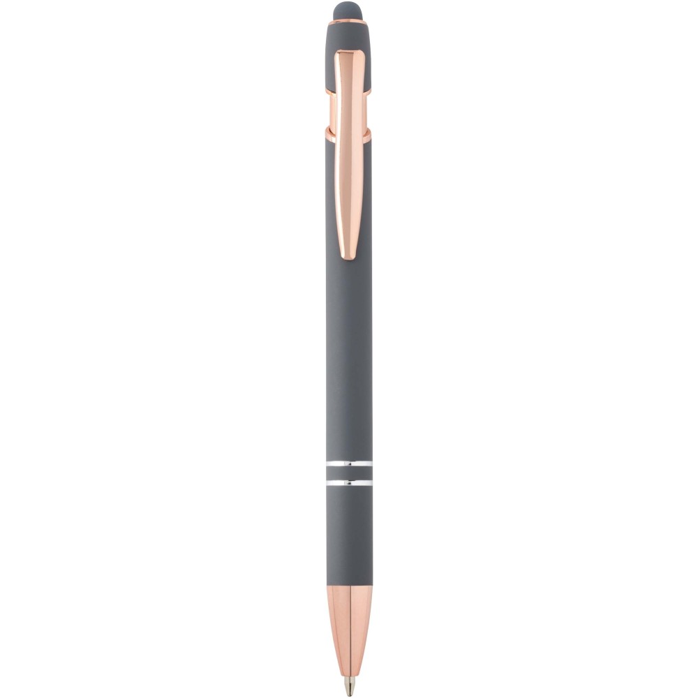 A Nanna golyóstoll rózsaarany bevonattal újrahasznosított alumíniumból készült tolltesttel és szilikon, érintőképernyős véggel rendelkezik. Az újrahasznosított alumínium csökkenti a hulladék mennyiségét a lerakókban, hozzájárul a természeti erőforrások megőrzéséhez és a károsanyag-kibocsátás mérsékléséhez. Tinta színe: fekete. Íráshossz: 800 méter. Tollhegy mérete: 1,0 mm.
