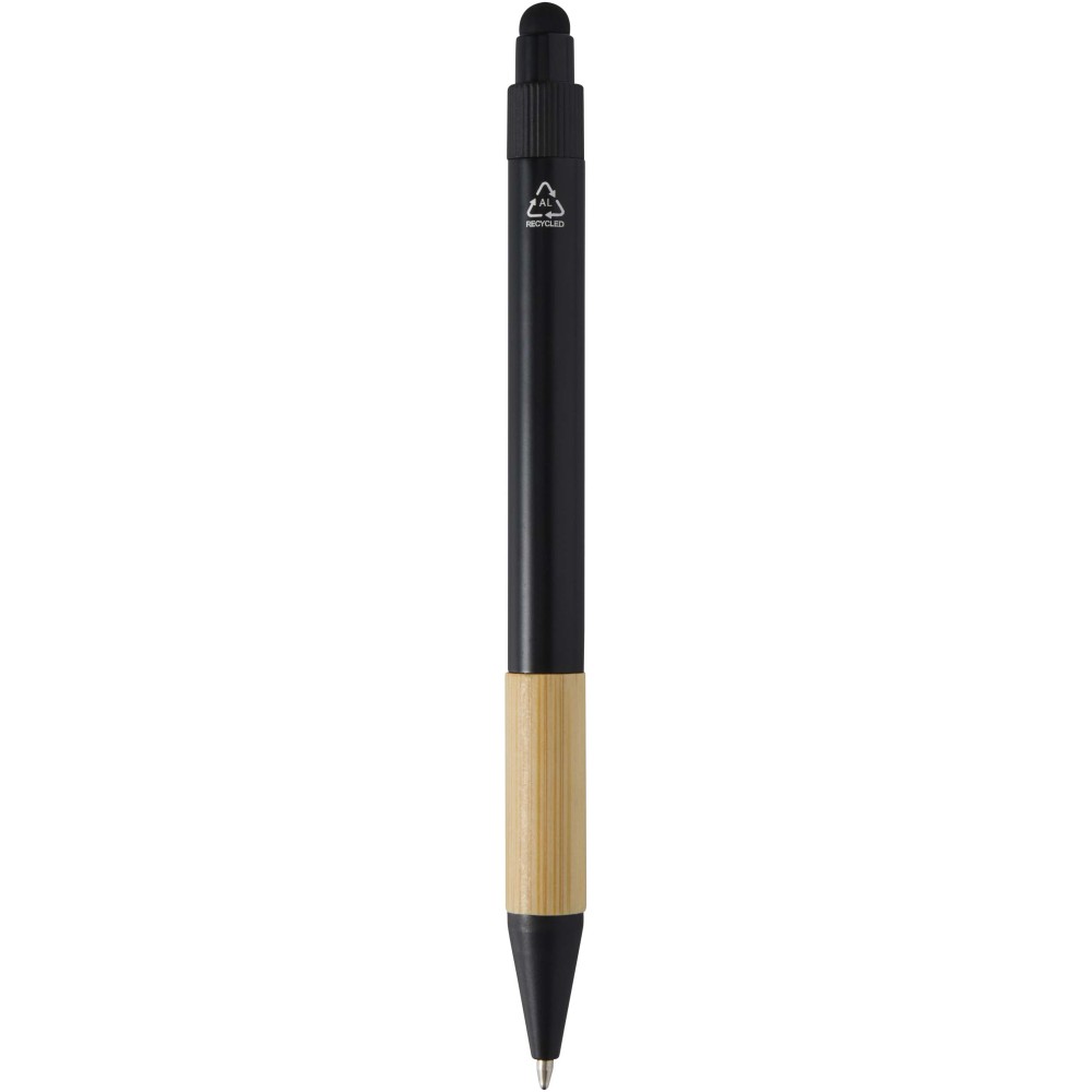 Minka ajándékszett RCS tanúsítvánnyal, újrahasznosított alumíniumból készült golyóstollal, amely stílusos bambusz markolattal és érintőképernyőkhöz használható stylus véggel van ellátva. A fekete tollbetét 1000 méteres íráshosszt biztosít. A készlet részét képezi továbbá egy bambusz díszítésű, integrált telefontartóval felszerelt alumínium kulcstartó (5,5 × 1,8 × 1 cm), valamint egy alumíniumötvözetből és bambuszból készült RFID kártyatartó (9,7 × 6,2 × 1 cm), amely akár 10 kártya számára nyújt védelmet. A termékeket egy elegáns, emblémázásra alkalmas fekete ajándékdobozban (16 × 16 × 2,7 cm) szállítjuk.