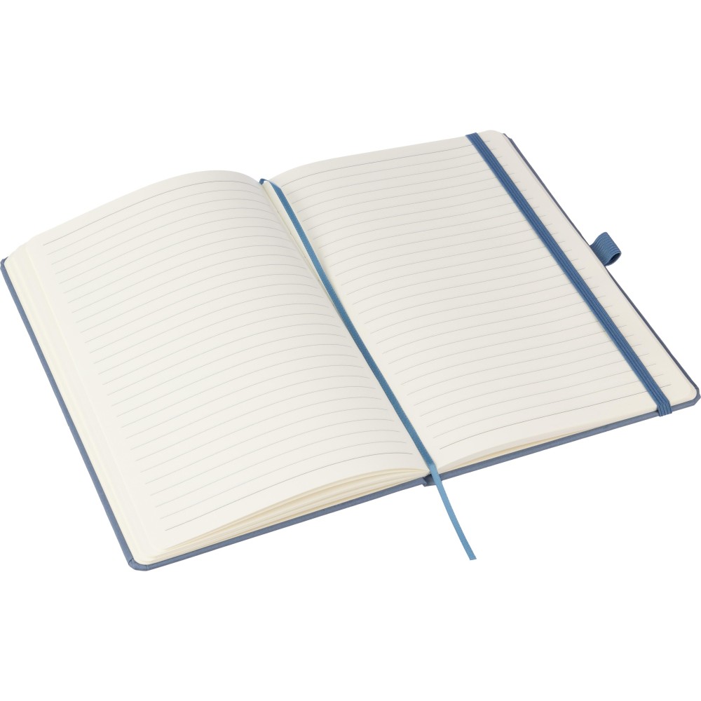 Újrahasznosított biohulladékból és kartonból készült A5-ös jegyzetfüzet 80 vonalas lappal, szójatintával nyomtatva. Minden füzet hátoldalán a hivatkozott alapanyag színének megfelelő dombornyomás található: zöld a citrusfélék, piros a cseresznye, kék a levendula, natúr a szőlő és a barna a mandula alapanyagra utal. A jegyzetfüzet olasz Favini papírral van bevonva.