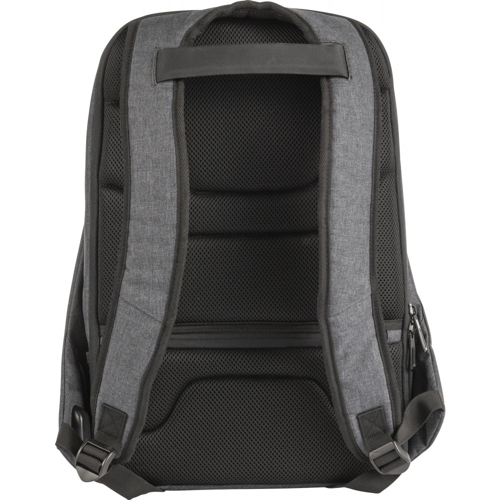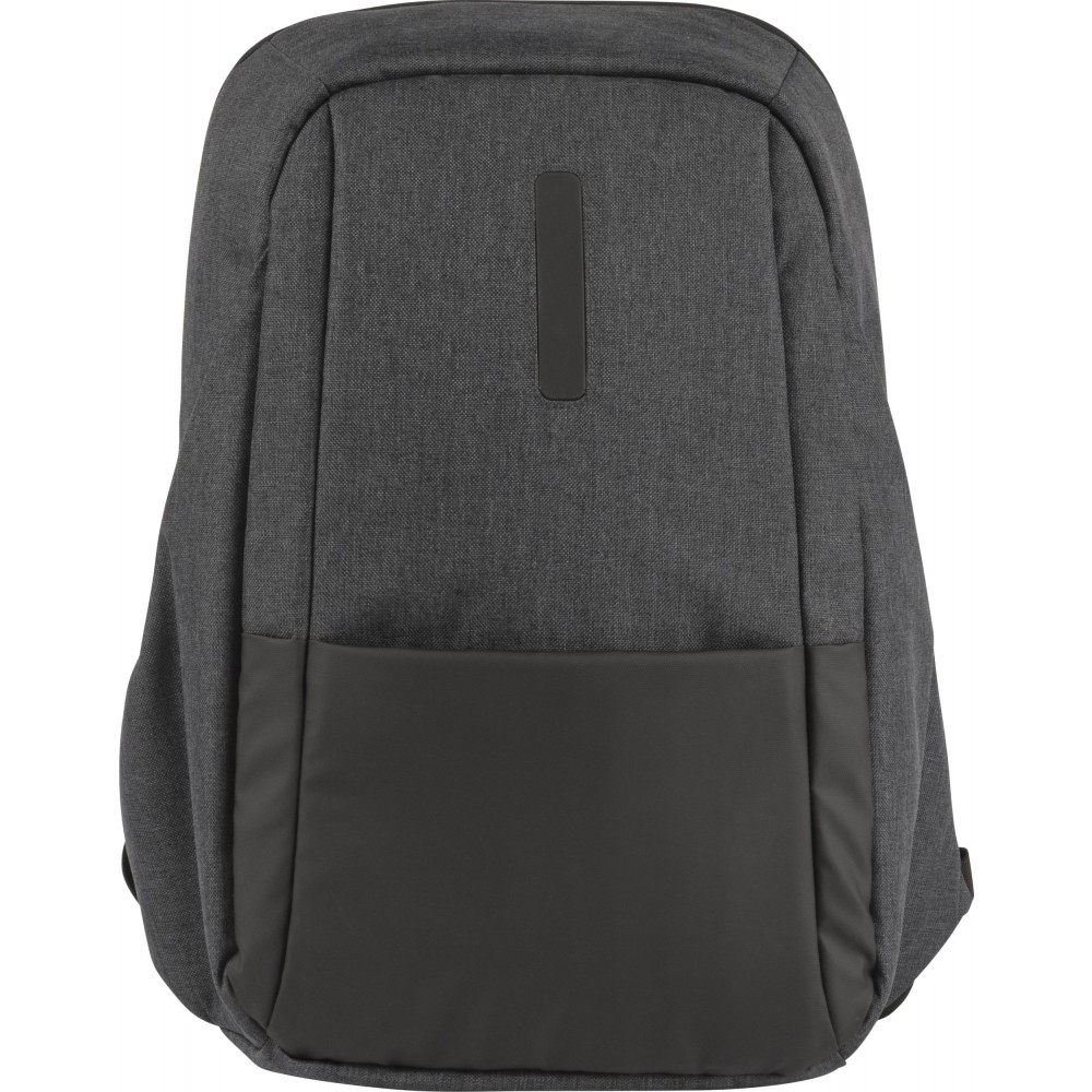 Hátizsák két fő rekesszel, amelyből az egyik laptop tárolására is alkalmas. Hátulján lopásgátló zsebbel és elöl két cipzáras zsebbel rendelkezik. Párnázott, állítható vállpánttal. PVC.