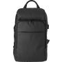 Hátizsák párnázott laptop rekesszel 15"-es laptop számára, USB porttal és vezetékkel, könnyített súlyelosztást biztosító kialakítással. Párnázott hátrész és állítható vállpánt, alumínium fóliával bélelt oldalzseb. 600D PU anyag.