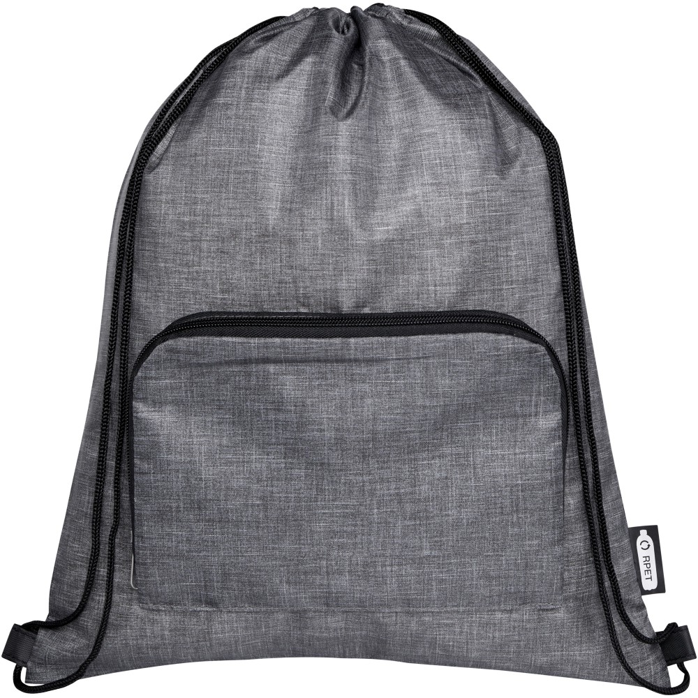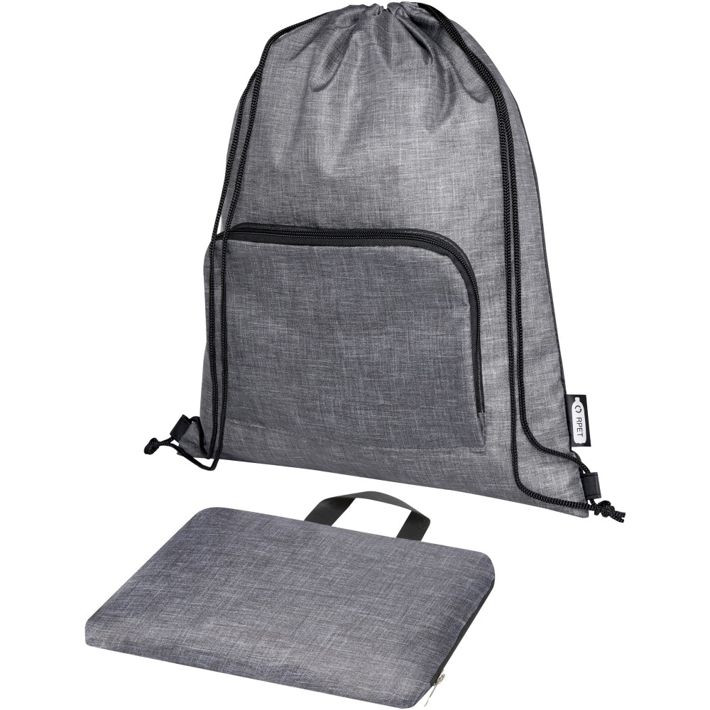 Az Ash összehajtható, újrahasznosított húzózsinóros táska egy cipzáras elülső rekesszel és egy cipzáras elülső zsebbel rendelkezik, amelybe a táska könnyen összecsukható a könnyű szállítás és tárolás érdekében.