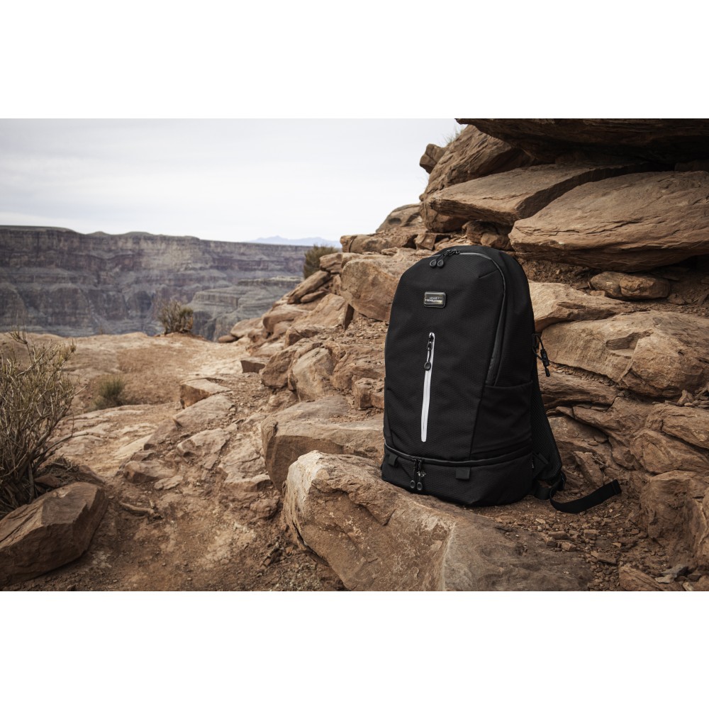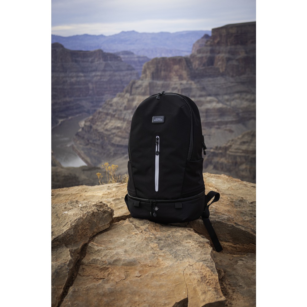 A Nomad hátizsák újrahasznosított PET-palackokból készült, és városi kalandokhoz, egynapos túrákhoz és utazásokhoz használható. Izoterm zsebe az ételeket hűvösen vagy melegen tartja. Több zsebbel is rendelkezik a rendszerezéshez, a belső tokban elfér egy ivótasak vagy egy 15,6"-es laptop. Légáteresztő, ütéselnyelő párnázott hátrésze gondoskodik a kényelemről, míg az állítható oldalzsebek vizespalackok vagy esernyők tárolására alkalmasak. Víz- és folttaszító fényvisszaverő elemekkel a közlekedésbiztonság érdekében.