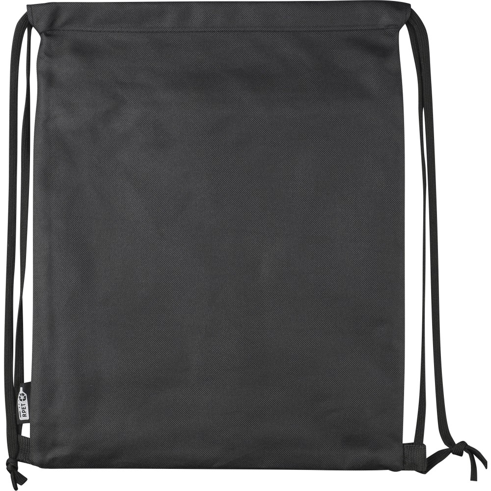 600D rPET poliészter tornazsák. Az elejét PU bevonat teszi vízlepergetővé. Rejtett cipzáras első zsebbel, két tárolórésszel, első és belső zsebekkel. Kapacitása 8 liter, teherbírása 8 kg. Oldalán rPET címkével.