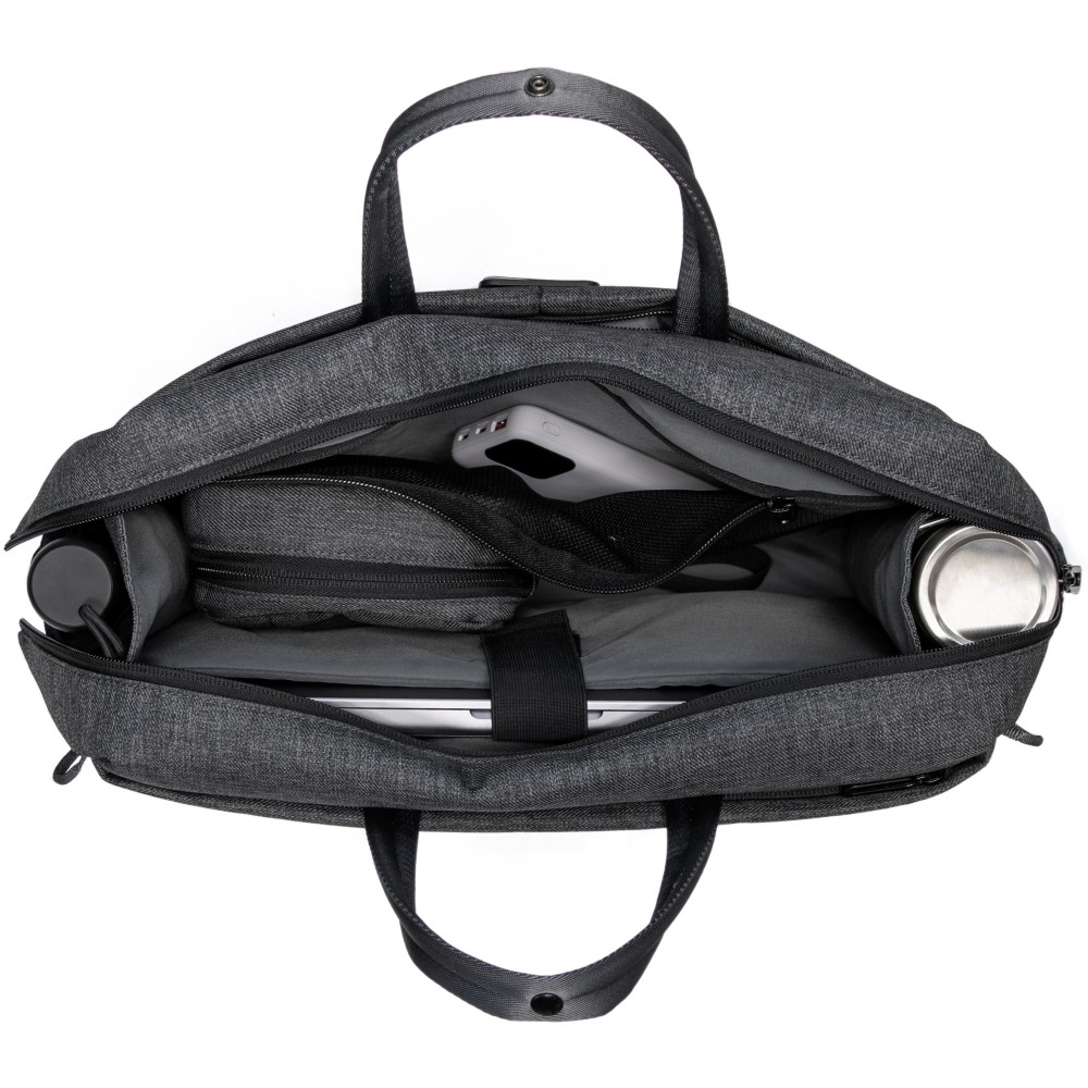 Újrahasznosított PET palackok felhasználásával készült BrandCharager laptoptáska 3 hordozási funkcióval: kézben, vállon vagy testen keresztbe vetve is viselhető. 16"-es laptop számára megfelelő tárolórésszel, több zsebbel és palack vagy esernyő számára megfelelő oldalzsebekkel, cipzáras záródással, hordozópánttal, 4 rekesszel. Strapabíró, víz- és folttaszító anyagból készült.
