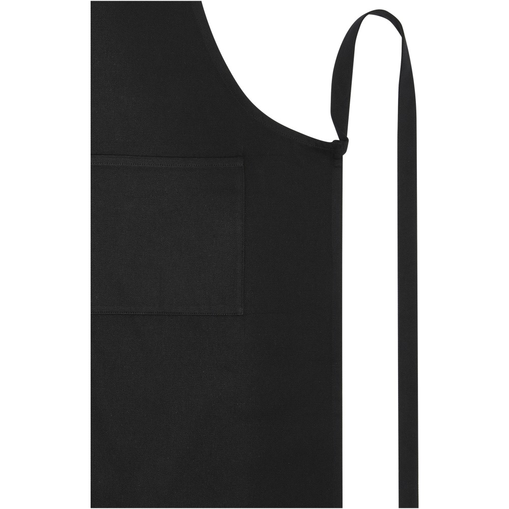 A Shara kötény 70% újrahasznosított pamutból és 30% újrahasznosított poliészterből készült, így vastag, strapabíró és kényelmes viselet. A kötény 2 egymás melletti zsebbel (egyenként 22 x 20 cm) és egy 1 méteres megkötővel rendelkezik. A kötény Cyclo újrahasznosított szálakat tartalmaz, ahol előválogatott hulladékot használnak, amely meghatározza a fonal színét. Minden kötényhez egy Aware nyomjelző is tartozik. Ez az innovatív funkció lehetővé teszi a felhasználók számára, hogy egy QR-kód segítségével nyomon követhessék a termék eredetét és útját, növelve az ellátási lánc átláthatóságát és elősegítve a termék és a gyártási folyamat közötti szorosabb kapcsolatot.
