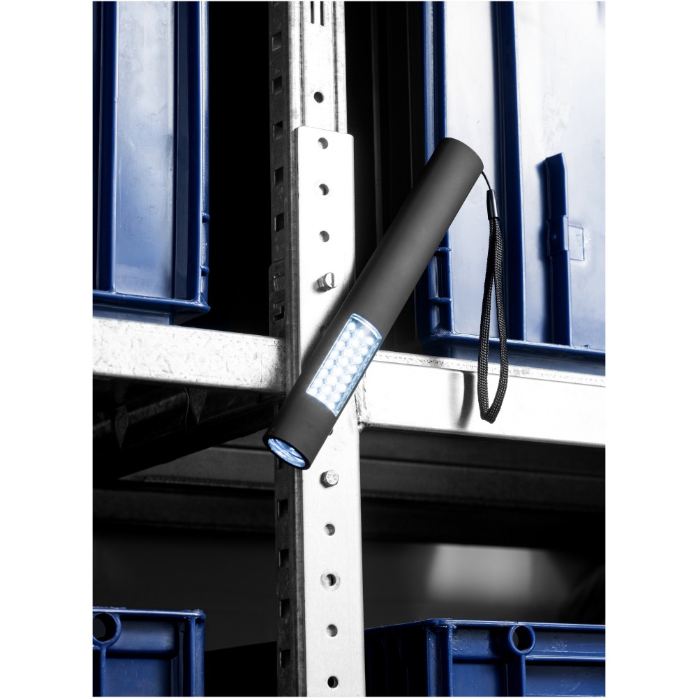 Vékony, mágneses zseblámpa három beállítási móddal. Az első mód 4 LED-es jelzőfény, a második mód 24 LED-es fény, a harmadik módban pedig a két előbbi mód egyszerre aktív. A mágneses hátoldalánál fogva könnyen tárolható vagy használat közben könnyedén rögzíthető bármilyen fém felülethez. Nyomógombos be-/kikapcsolás. Nylon tartópánttal. Csomagolás: STAC ajándékdobozban. Az elemek a csomagban vannak és be vannak helyezve. Exkluzív kivitel.