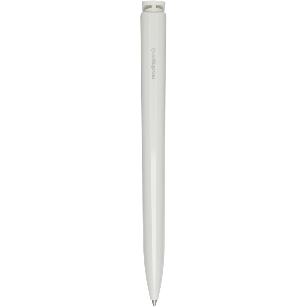 Golyóstoll, amelynek teste és klipsze újrahasznosított műanyagból készült, a hegy pedig rozsdamentes acélból. Kék tollbetéttel. Íráshossz: 3000 méter. Hegyméret: 1,00 mm. Németországban készült.
