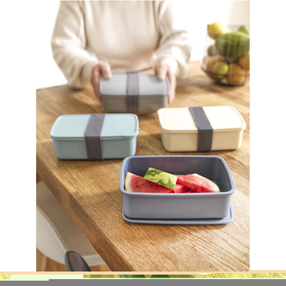 A Dovi 800 ml ételtároló doboz a mindennapi kényelmet szolgálja. Gumiszalagos záródása biztonságosan a helyén tartja a fedelet, így tökéletes választás útközbeni étkezésekhez.