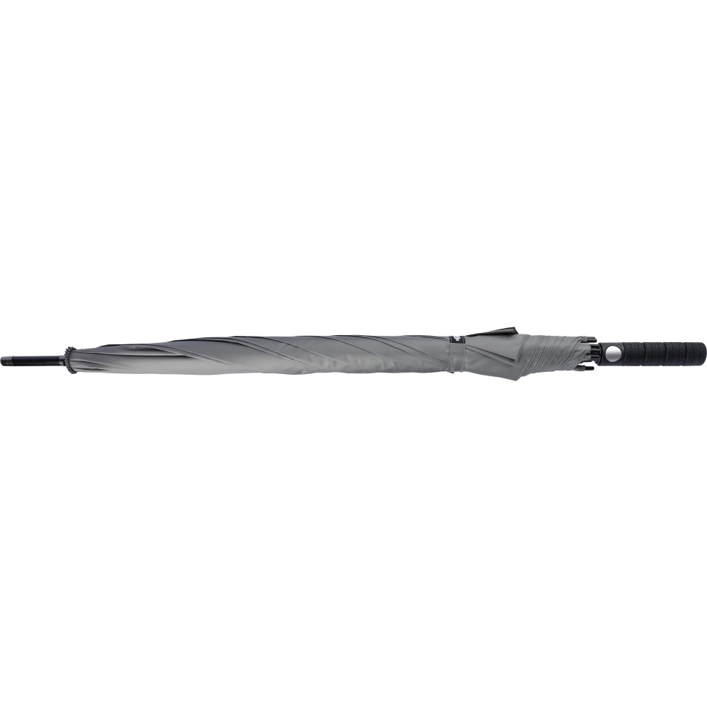 Automata esernyő (27 inch) nyolc panellel és üvegszálas vázzal. Nyomógombbal nyitható, tépőzáras záródásán RPET címkével, tokkal. Szélálló. Anyaga: RPET 190T.