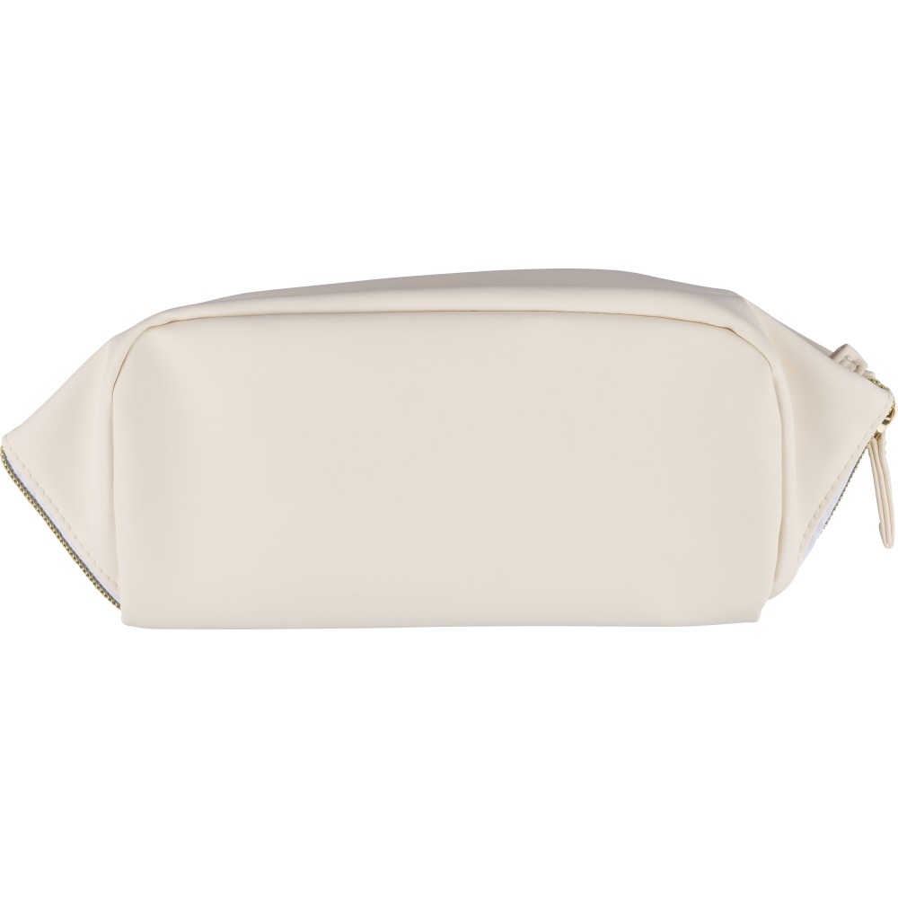 Újrahasznosított PU anyagból készült neszesszer középen elhelyezett cipzárral a széles nyithatóság érdekében. Rövid fogantyúval, tágas belső térrel és négy rekesszel, beleértve egy belső cipzáras zsebet. 210D újrahasznosított béléssel készült, belsejében egy újrahasznosított alapanyagra utaló címkével.