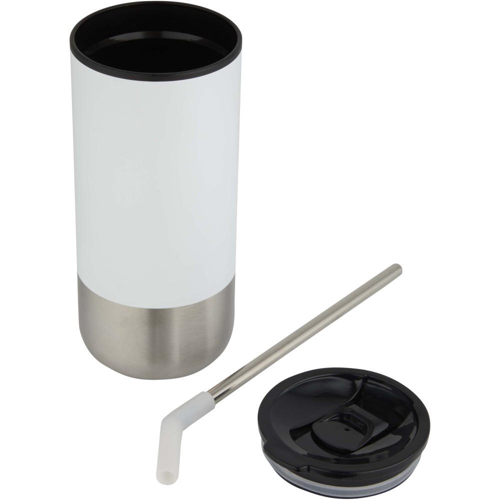 Ez a 480 ml űrtartalmú termoszpohár duplafalú, hőszigetelt kialakítással rendelkezik és egy szilikon véggel ellátott, újrahasznosított rozsdamentes acél szívószál tartozik hozzá a kényelmes használat érdekében. A belső fal PP műanyagból, míg a külső rész RCS tanúsítvánnyal rendelkező, újrahasznosított rozsdamentes acélból készült. A PS és ABS műanyagból készült csúsztatható fedél, valamint a matt külső bevonat elegáns megjelenést kölcsönöz a terméknek.