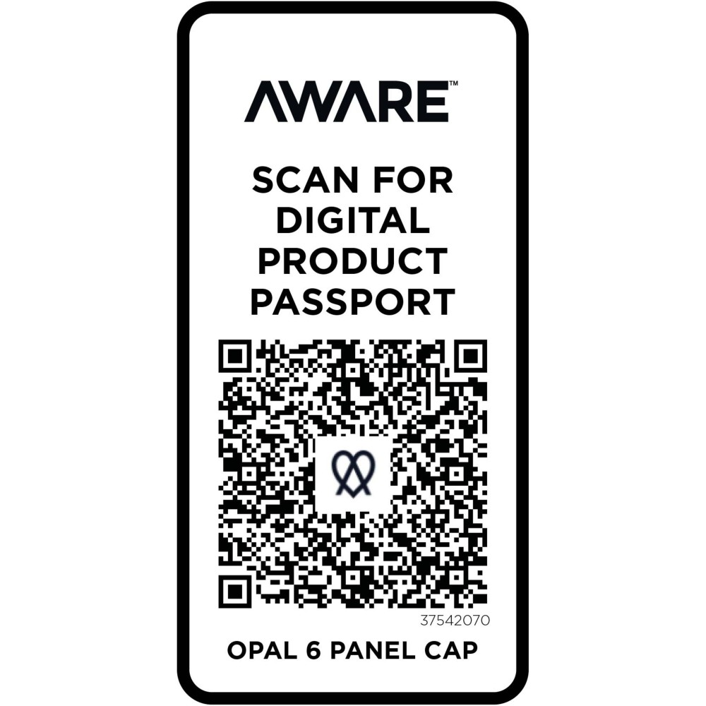 Az Opal 6 paneles sapka 70%-ban újrahasznosított pamutból és 30%-ban újrahasznosított poliészterből készült. Úgy tervezték, hogy 58 cm-es fejkörfogatnál kényelmesen illeszkedjen, a fémcsatos záródás pedig könnyű és biztonságos beállítást tesz lehetővé. A sapka Cyclo újrahasznosított szálakat tartalmaz, ahol előválogatott hulladékot használnak, amely meghatározza a fonal színét. Ezek a szálak nem csak a szűz erőforrások iránti igényt csökkentik, hanem a körkörös élet iránti elkötelezettséget is mutatják, megtestesítve a hulladékcsökkentés lényegét. Minden sapkához egy Aware nyomjelző is tartozik. Ez az innovatív funkció lehetővé teszi a felhasználók számára, hogy egy QR-kód segítségével nyomon követhessék a termék eredetét és útját, növelve az ellátási lánc átláthatóságát, és elősegítve a termék és a gyártási folyamat közötti szorosabb kapcsolatot.