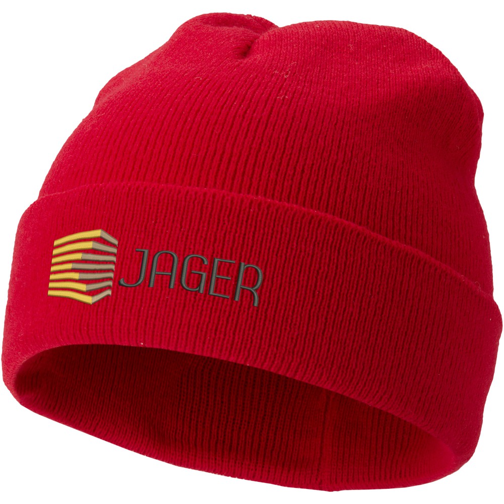 Egyrétegű sapka duplán felhajtott széllel. 1x1-es bordás kötésű, 100% akril.