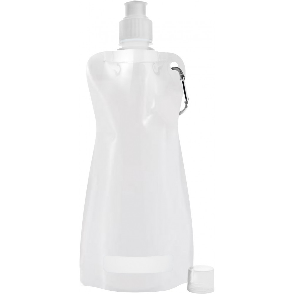 Összehajtható vizeskulacs karabinerrel. Nem szivárgásmentes. Mosogatógépben nem tisztítható. 420ml. BPA-mentes műanyag.