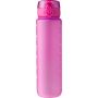 Műanyag motivációs palack szivárgásmentes kupakkal, csuklópánttal, matt bevonattal. Oldalán beosztással. Űrtartalom: 1 liter.