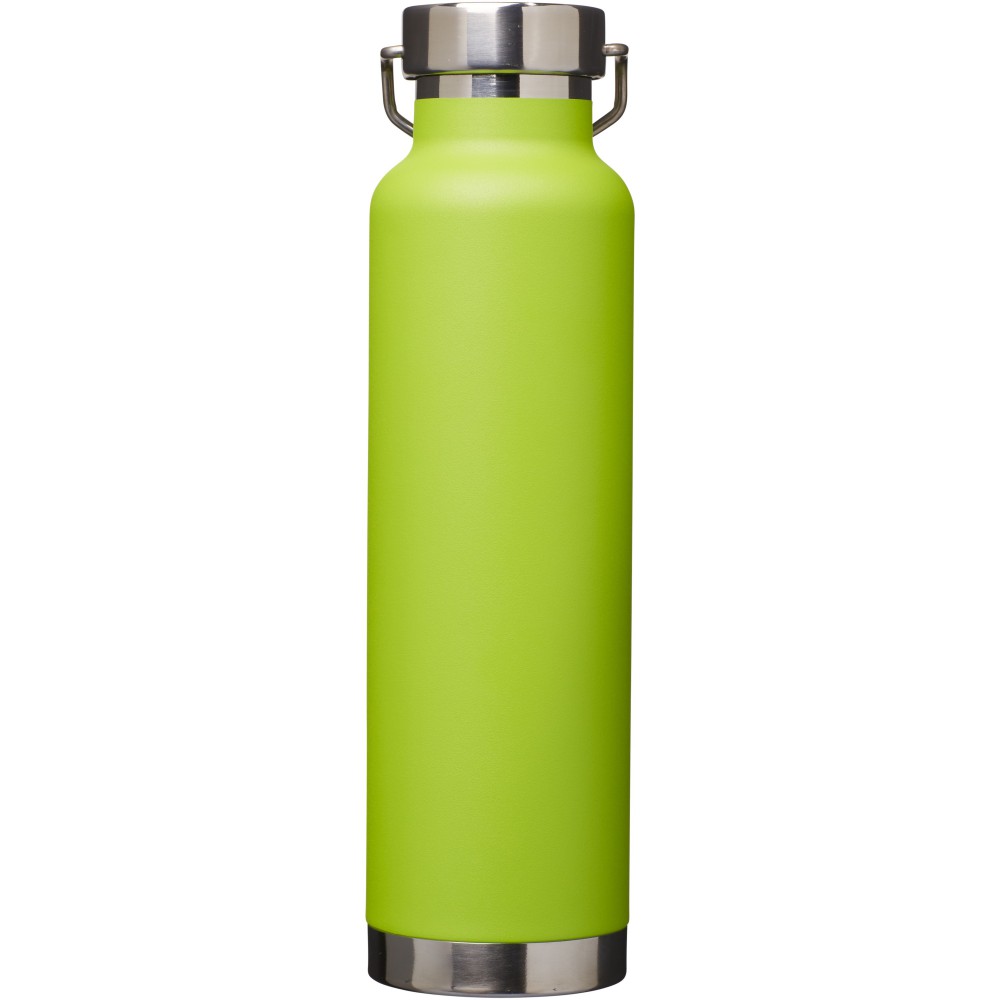 Thor duplafalú vákumos palack. Belső fala réz, ennek köszönhetően 48 órás hideg- és 12 órás melegtartási képességgel rendelkezik. Ez a kialakítás megakadályozza a kondenzációt a palack külső falán. A termoszhoz csavaros, rozsdamentes acél kupak tartozik. Széles kiöntő nyílással rendelkezik, amely akár jégkockák behelyezésére is alkalmas. Szivárgásmentes. Szénsavas italokkal nem használható. Mosogatógépben nem mosható és mikrohullámú sütőben történő melegítésre nem alkalmas. Űrtartalom: 650 ml. Csomagolása Avenue díszdoboz. Rozsdamentes acél.
