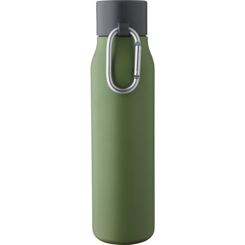 Újrahasznosított rozsdamentes acélból készült palack (600 ml-es). A belső anyaga 304-es, a külső anyaga pedig 201-es rozsdamentes acél. Szivárgásmentes PP kupakkal és alumínium karabinerrel. A karabiner mászáshoz nem alkalmas. A palack a benne tárolt italt 6 órán át melegen vagy 9 órán át hidegen tartja. Az újrahasznosított anyagra utaló logó a palackra van gravírozva. Csomagolása barna papírdoboz.