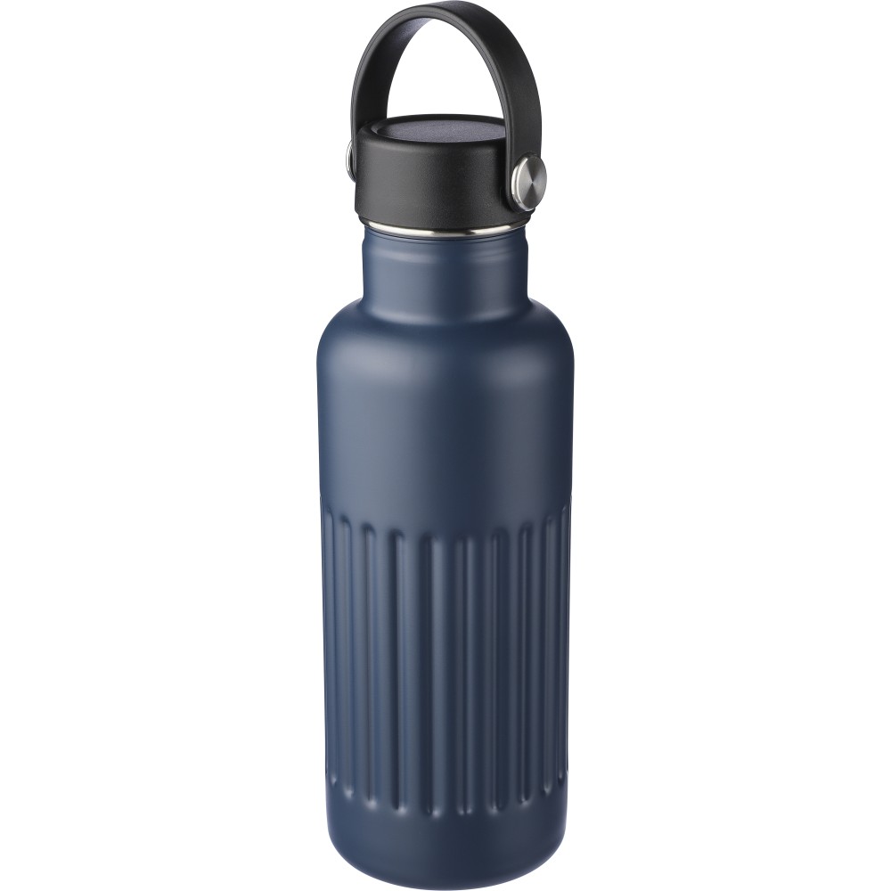 Újrahasznosított rozsdamentes acél termosz, 500 ml. A belső 304-es, a külső 201-es rozsdamentes acélból készült, bordás markolattal, PP és fém fedéllel, műanyag hordozófüllel. Gravírozott újrahasznosított logó található a terméken. Csomagolása barna papírdoboz.