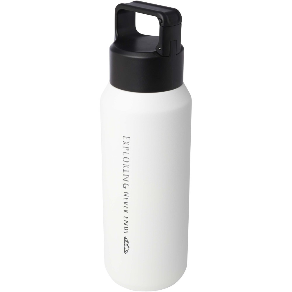 RCS tanúsítvánnyal rendelkező, rozsdamentes acélból készült, dupla falú, rézvákuum-szigetelésű kulacs, beépített karabineres fedéllel, amely megkönnyíti a táskához vagy övhöz való rögzítést. Szénsavas italokhoz is alkalmas. Újrahasznosított kartonból készült díszdobozban kerül átadásra. Űrtartalom: 600 ml.