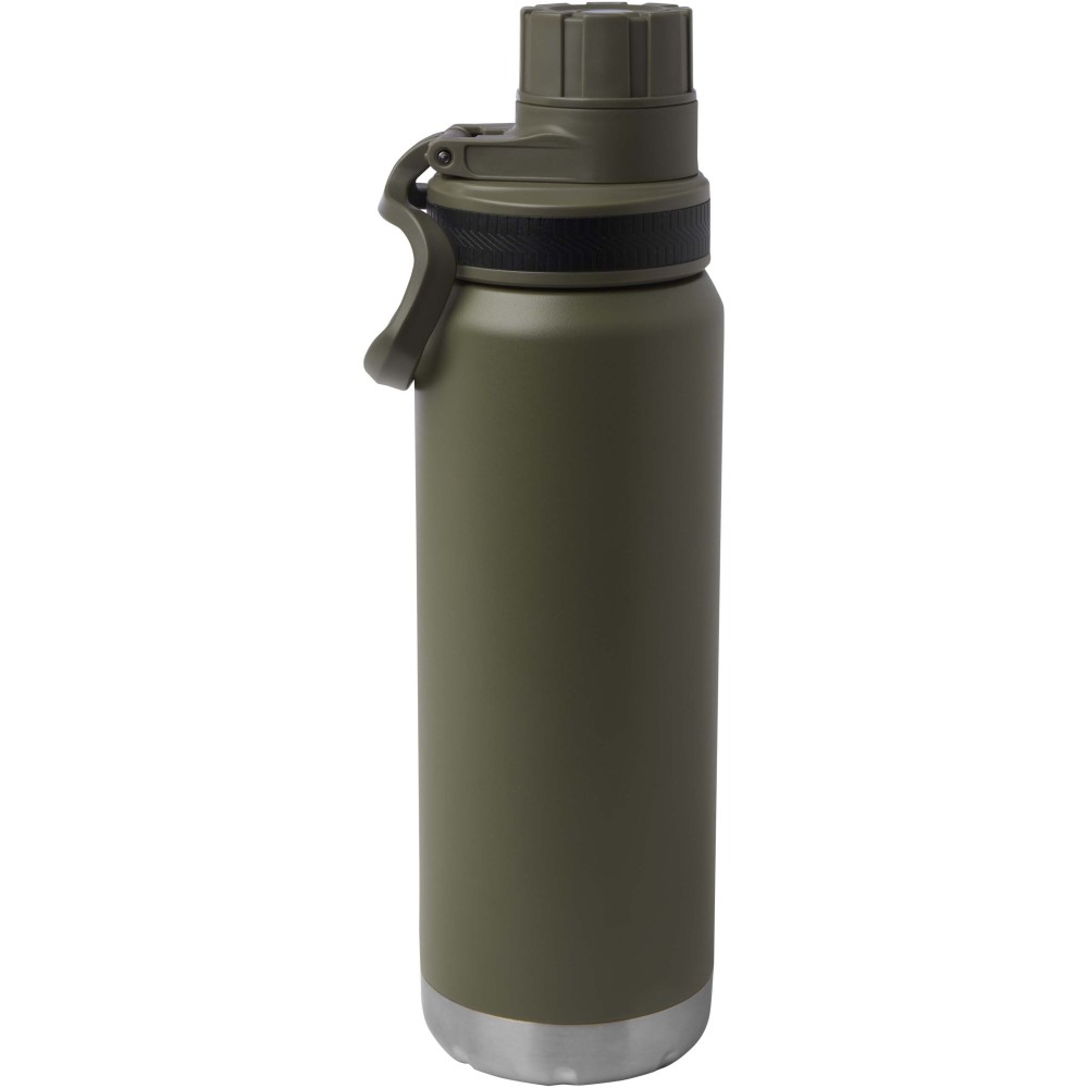 RCS tanúsítvánnyal rendelkező, rozsdamentes acélból készült, dupla falú, rézvákuum-szigetelésű kulacs csavaros, szivárgásmentes fedéllel. Széles nyílása megkönnyíti a töltést és a tisztítást, a fedélbe integrált hordozófül pedig praktikus szállítást biztosít. Szénsavas italokhoz is alkalmas. Külső felületén tartós porszórt bevonat található. Újrahasznosított karton díszdobozban kerül átadásra. Űrtartalom: 700 ml.