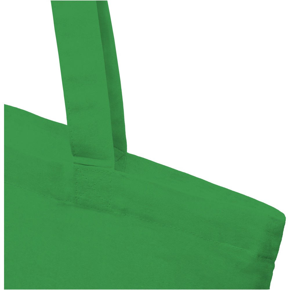 A Carolina táska könnyű és pénztárcabarát, így kiválóan alkalmas reklámhordozó rendezvényeken, konferenciákon vagy kiállításokon. A nagy fő rekesz elegendő helyet biztosít a könnyű tárgyak tárolására, a 30 cm-es vállpántok pedig megkönnyítik a táska szállítását. Fülek magassága 30 cm. 100 g/m2 pamut.