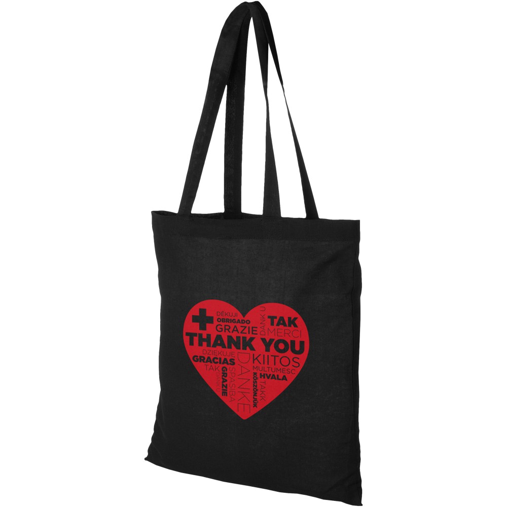 A Carolina táska könnyű és pénztárcabarát, így kiválóan alkalmas reklámhordozó rendezvényeken, konferenciákon vagy kiállításokon. A nagy fő rekesz elegendő helyet biztosít a könnyű tárgyak tárolására, a 30 cm-es vállpántok pedig megkönnyítik a táska szállítását. Fülek magassága 30 cm. 100 g/m2 pamut.