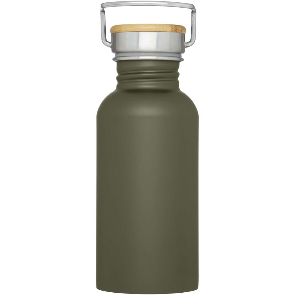 Egyfalú rozsdamentes acél palack csavaros tetővel. A fedélen bambusz rátét, valamint egy fül a könnyű hordozhatóságért. Szivárgásmentes. Szénsavas italokkal nem használható. Mosogatógépben nem mosható és mikrohullámú sütőben történő melegítésre nem alkalmas. Űrtartalom: 550 ml. Csomagolása Avenue díszdoboz. Rozsdamentes acél, bambusz.