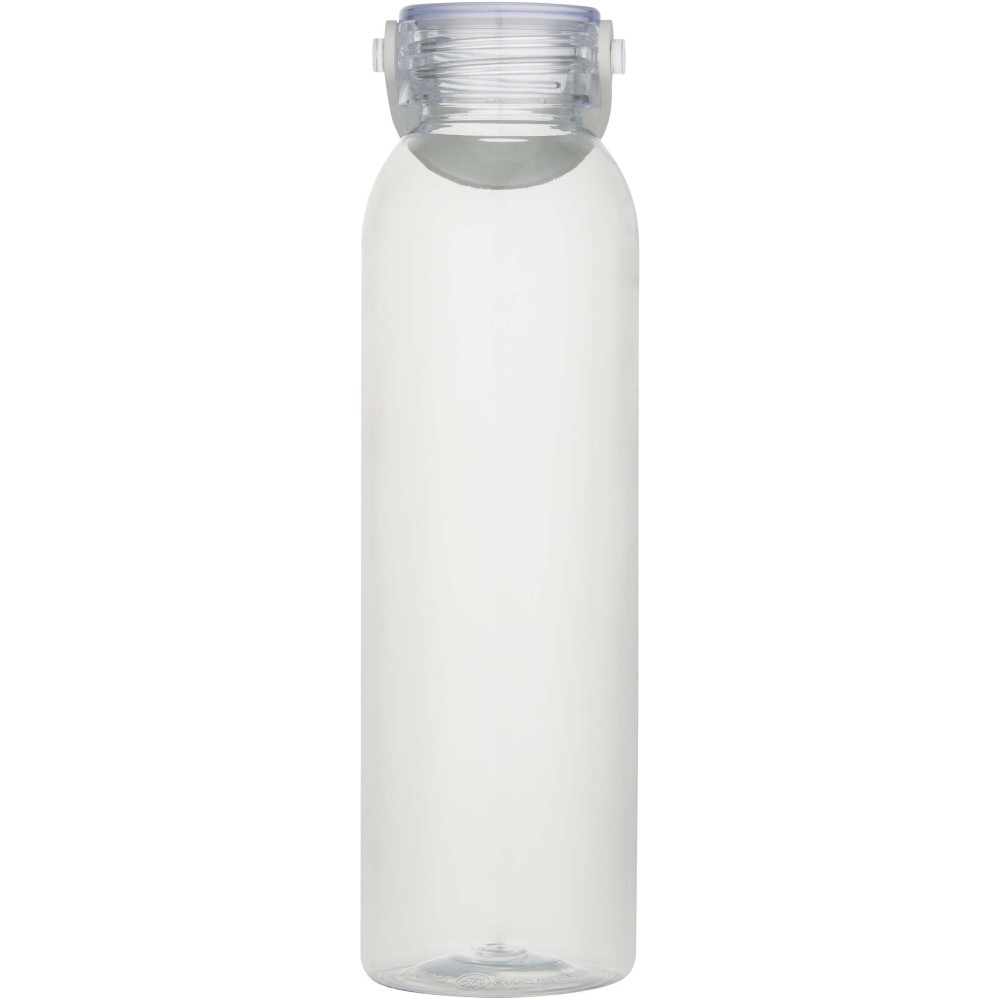 RCS tanúsítvánnyal rendelkező RPET-ből készült kulacs, praktikus szilikon hordozófüllel. Megfelel az EFSA által jóváhagyott PET-újrahasznosítási eljárásnak. Űrtartalom: 630 ml.